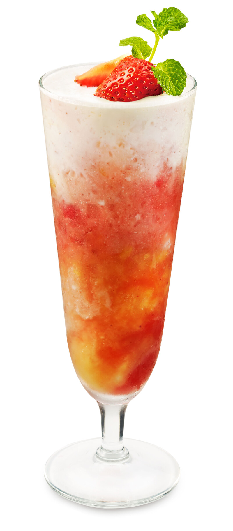 新口味哈蜜瓜、芒果以及覆盆子冰淇淋與白酒、伏特加完美調配,搭配繽紛多彩的新鮮水果漂浮在酒杯,絕美夢幻調酒傳遞香甜果感,輕鬆享受的夏日微醺。