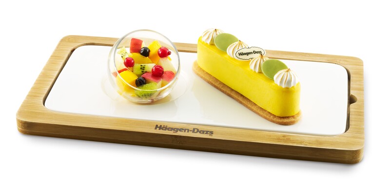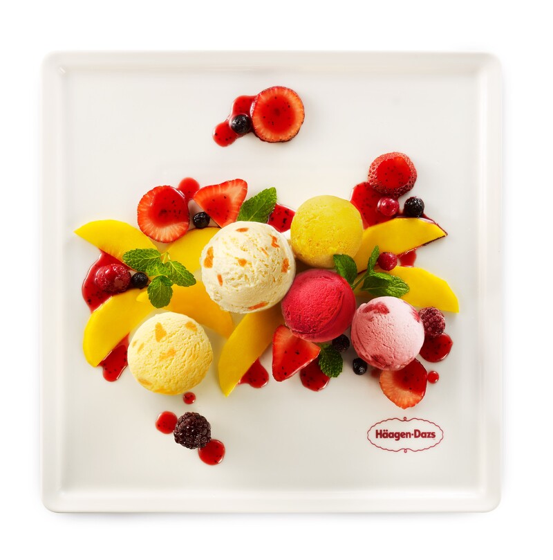 新口味哈蜜瓜及芒果冰淇淋與其他三種水果口味冰淇淋搭配新鮮水果,亮麗鮮甜組合出屬於夏天的香甜滋味