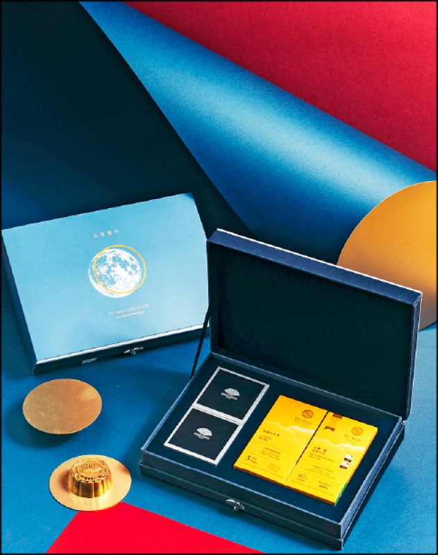 有趣的是,「文華東方福灣中秋禮盒」的腰封,特別襯上寶藍天空為底,寫實的月球則套上金色圓框,像是以天文望遠鏡觀月,呼應福灣成為「巧克力NASA」的決心。