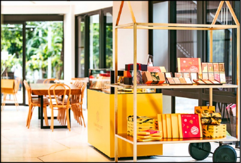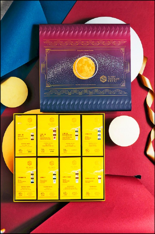 今年,「福灣巧克力」與「台北文華東方餅房」西點總主廚任樂軒合作,推出兩款限量版的巧克力月餅禮盒,以法式甜點手法展現台灣產區巧克力的另類風味。「黑金美人」以榮獲「世界最佳黑巧克力」的「台灣一號屏東黑巧克力62%」風味為核心,以其製作巧克力甘納許,夾入醇厚的芝麻混合花生的內餡,底襯酥脆的莎布蕾餅乾,並在其中加入帶有蜜香的東方美人茶,與可可天然的糖蜜香結合、增加餘韻;而「鳳梨鐵觀音」則是以「台灣二號鹽之花黑巧克力70%」所製作的巧克力甘納許為主角,搭配帶有高雅香氣的鳳梨柚子果餡,底襯是帶有鳳梨、可可香氣的鐵觀音茶所製作的莎布蕾餅乾。