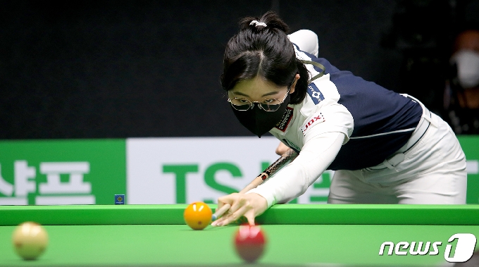 (서울=뉴스1) 송원영 기자 = 1일 서울 강서구 메이필드호텔에서 열린 ‘TS샴푸 PBA-LPBA 챔피언십 2020’ 에서 이미래가 큐대로 공을 조준하고 있다. (PBA 제공) 2020.10.1/뉴스1
