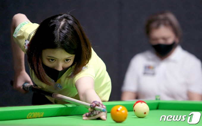 (서울=뉴스1) 송원영 기자 = 1일 서울 강서구 메이필드호텔에서 열린 ‘TS샴푸 PBA-LPBA 챔피언십 2020’ 에서 서한솔이 공을 조준하고 있다. (PBA 제공) 2020.10.1/뉴스1