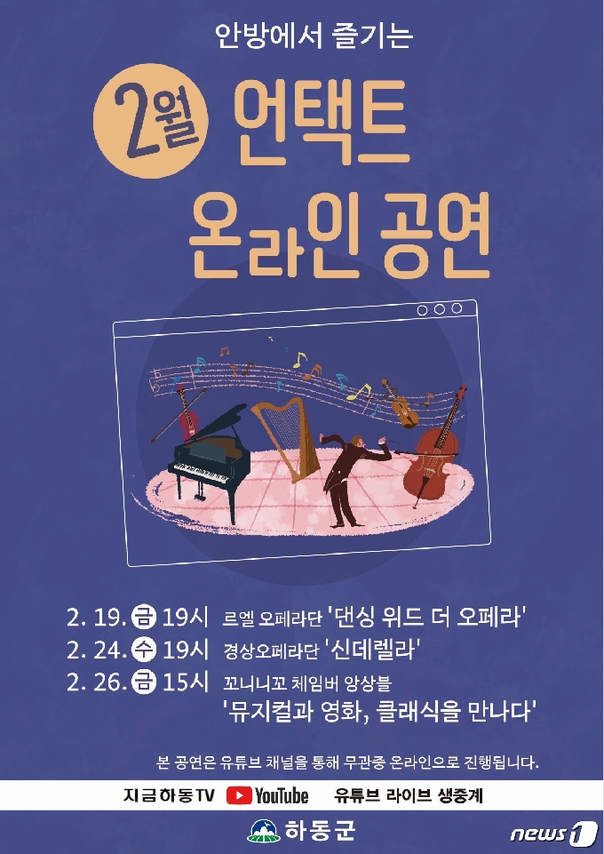 최대성 문화체육과장은 "비대면 온라인 공연을 통해 문화예술의 갈증을 해소할 수 있도록 다양한 방법을 추진하겠다"고 밝혔다.