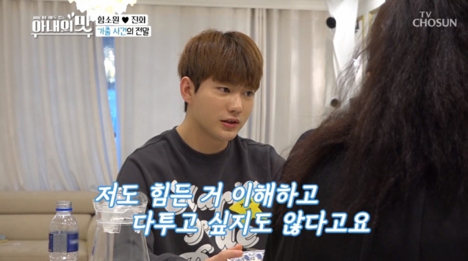 혼자서 일하는 함소원을 이해하라는 마마에게 진화는 "나도 싸우기 싫다. 둘만의 시간도 없이 외식도 못하고 함소원에게 뭘 하자고 해도 피곤하다고 싫다고만 한다. 물론 힘든건 이해 하는데 우린 부부이지 않냐, 함께 하는 시간이 없어졌다"고 말했다.