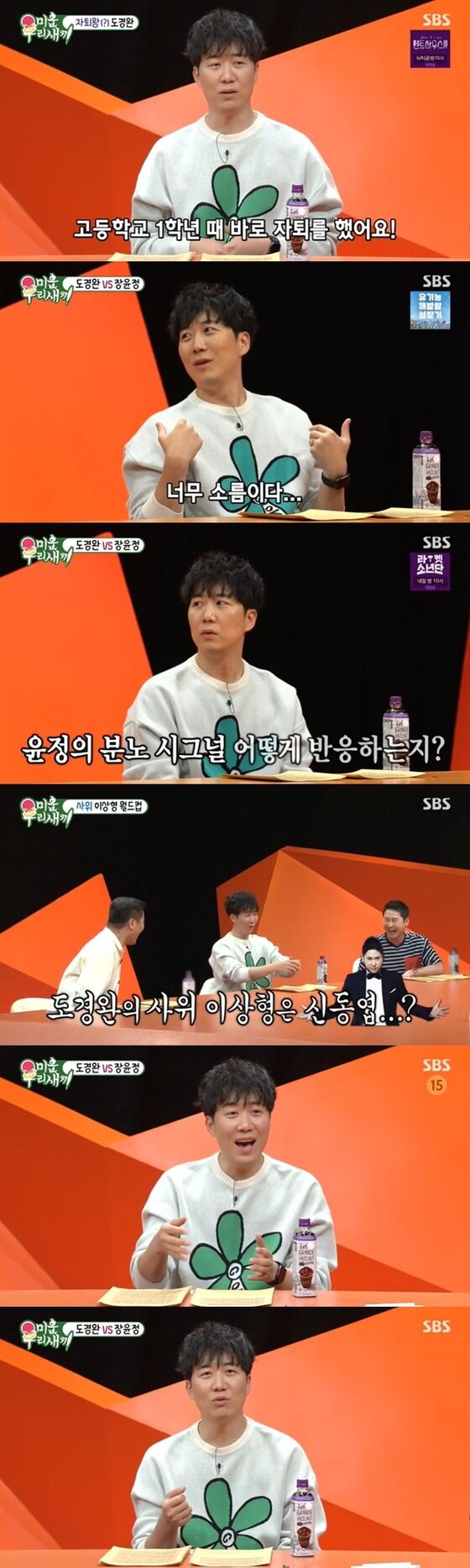 도경완은 신동엽에게 "속 안 썩였을 것 같지만, 두번이나 자퇴경험이 있다고 들었다"는 질문을 받았다. 이에 도경완은 "부모님에게 빚을 갚는 마음으로 현재 살고 있다"며 말을 이어나갔다.